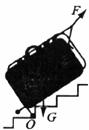 29.一种底部装有一个十字轮而可以爬台阶的行李箱如图所示,在某瞬间可认为箱子是以O点为支点作转动。试画出这时拉力F和重力G的力臂.