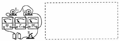 32.在一次实验中要测量灯泡L1的电阻,某同学用两节干电池、两只相同的灯泡和三个电表连接成如图所示的电路,图中甲、乙、丙三个电表连接没有错误,当他接通开关S后,灯泡L1、L2均正常发光,忙乱中他仅记录了三个电表的示数的数值l.2、2.0和1.0(单位为A或V).