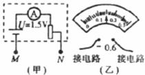 (3)晓晓与冬冬研究设计了如图(甲)所示测电阻的电路,其中电源电压恒为1.5V.将M、N两线头相接,调节滑动变阻器,使电流表指针指在0.6A处,则此时滑动变阻器接入电路的电阻是_________