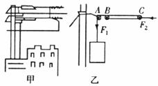 36.电气化铁路的高压输电线,无论在严冬还是盛夏都要绷直,才能使高压线与列车的电极接触良好,这就必须对高压线施加恒定的拉力,为此,工程师设计了如图甲所示的恒拉力系统,其简化原理图如图乙所示,实际测量得到每个水泥块的体积为l.5×10-2m3,共悬挂20个水泥块,已知水泥块的密度为2.6×103kg/m3,g取10N/kg.