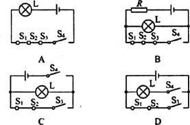 3.小轿车上都装有一个用来提醒司机是否关好车门的指示灯。四个车门中只要有一个门没关好(相当于一个开关断开),该指示灯就会发光。如下图所示的模拟电路图符合要求的是
