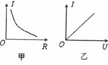 ②下图是某实验小组在探究过程中根据实验数据绘制的图象,其中表示电压不变时,电流随电阻变化的图象是_________图,表示电阻不变时,电流随电压变化的图象是_________图。(选填“甲”或“乙”)