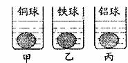 7.如图体积相等的实心铜球、铁球、铝球(p铜>p铁>p铝),放入三个相同的烧杯中,三个球都浸没且液面的高度相同。天平测量发现三个烧杯的总质量也相等,那么三个烧瓶中液体质量的大小关系是_______________(用m甲、m乙、m丙表示);三种液体密度的大小关系是__________________ (用p甲、p“p丙表示)。