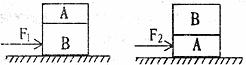 9.如图所示,A是重为500N的光滑铝块,B为重500N的粗糙木块,当A在上方时,用水平推力