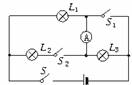 17.在下图所示的电路中,当开关S1、S2断开时,灯泡__________串联;当开关S、S1、S2均闭合时,灯泡__________并联,此时电流表测的是__________中的电流.