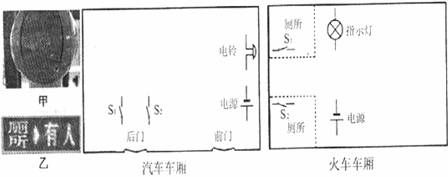 (2)火车的车厢后面有两间厕所,只有当两间厕所的门都关上时(每扇门的插销相当于一个开关),车厢中的指示牌内的指示灯才会发光,指示牌就会显示“厕所有人”字样,如图乙所示,提醒旅客两间厕所内都有人。
