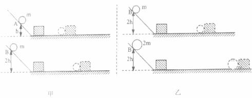 (1)让质量相同的两个小球沿同一光滑斜面分别从A处和B处开始向下运动,然后与放在水平面上的纸盒相碰,纸盒在水平面上移动一段距离后静止,如图甲所示。