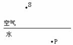 2、如下图所示,一激光灯从点S发出的一束射向水面的光,在界面发生反射和折射,折射光线经过P点,请你在图中大致作出入射光线及其相应的反射光线和折射光线,使之符合光的反射定律和折射规律。