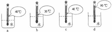 23.如下图所示,a杯中水量较少,b、c、d杯中的水量相同,根据内能的知识,分析比较各杯中水的内能的大小。