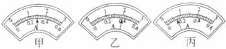 (2)按电路图连好实物后,只闭合S1时,电流表的示数如下图甲所示;只闭合S2时,电流表的示数如图乙所示;同时闭合S1、S2时,电流表的示数如图丙所示,请完成下表。