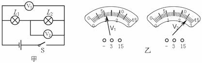 23.如图甲所示的电路中,电压表所用的量程不明,当电路闭合后,V1和V2的示数分别如图乙所示,则V1 用的量程是 V,V2 用的量程是 V ,小灯泡L1上的电压U1 = V。