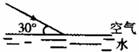 25、①如图所示,一束光线与水平面成30°角从空气斜射到水面时,发生反射和折射,请你在图中画出它的反射光线,标出反射角的大小和折射光线的大致方向。(3分)