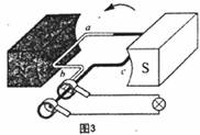 6.图3是是一个发电机的原理图,下列关于线圈a、b、c、d的各边切割磁感线的情况,正确的是