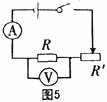 8.某同学在做伏安法测电阻的实验时,连接电路如图5所示,闭合开关后,发现电压表的指针有明显的偏转而电流表的指针几乎不动。调节滑动变阻器的滑片时,电压表的指针没有明显的变化,发生这种现象的原因可能是