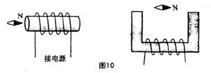 10.如图10所示,按小磁针的指向标出螺线管的极性和电流的方向。