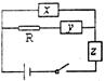 5.如果利用下图所示的电路来测量一个大电阻R的电压和电流,那么x、y、z应分别代表
