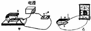 15.如下图甲、乙所示的两个演示实验中,演示磁场对电流作用的是_______图;演示电磁感应现象的是_______图。
