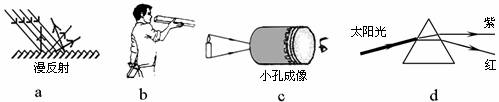 D.图d表示太阳光经过三棱镜色散后的色光排列情况