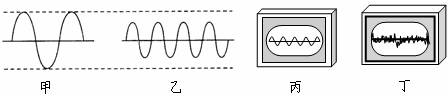 17.如图所示,甲、乙是两种声音在同一个示波器上显示出来的波形,从图形可知 图响度大, 图音调高;丙、丁是另外两种声音在同一个示波器上显示出来的波形,从图形可知图 是乐音的波形,图 是噪声的波形。