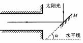 27.为了把太阳光反射到一座洞口朝向正东方向的水平涵洞中去,小明设计安装了一块能自动调节方向的平面镜M,如图所示,正午时刻,太阳光垂直于水平地面照射,图中表示平面镜方向的那个角度应为α=_________;午后,随着太阳西斜,α应适当________(选填“增大”或“减小”)