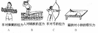 12.如图所指出的四个力中,使受力物体运动状态发生改变的是 ( )