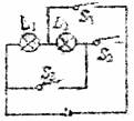 6.如下图所示电路中,当____________闭合时,L1、L2并联;当____________闭合时,L1、L2串联,当____________闭合时电路会发生短路,损坏电源。