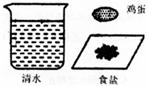 (3)给你一杯清水、一个熟鸡蛋和适量的食盐(如下图所示),请你设计实验验证浮力与液体的密度是否有关,简要写出你的实验验证的方法。