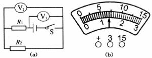 3.在如图(a)所示电路中,当闭合开关后,两个电压表指针偏转均如图(b)所示,则电阻R1和R2两端的电压分别为