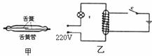 9.如图甲所示,将一对磁性材料制成的弹性舌簧密封于玻璃管中,舌簧端面互叠,但留有间隙,就制成了一种磁控元件--干簧管,以实现自动控制。某同学自制了一个线圈,将它套在干簧管上,制成一个干簧继电器,用来控制灯泡的亮灭,如图乙所示。干簧继电器在工作中所利用的电磁现象不包括