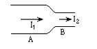 8、如下图所示的导线,其A处直径大于B处直径,那么通过A处和B处电流强度的关系I1____I2(填“大于”、“小于”或“等于”)。