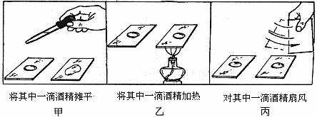 1、液体蒸发的快慢可能与液体的表面积、液体的温度以及液面上方空气的流动快慢有关,为了通过实验探究蒸发的快慢是否与这些因素有关,某同学做了如下三组实验,每组实验中分别滴在两块玻璃板上的酒精质量相等。请根据下图中所示情景回答问题: