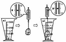 34.(4分)亮亮利用一只量杯(装有适量的某种液体)、一根细线和一只弹簧测力计测量形状不规则的固体物块的密度(该物块不吸收任何液体),实验流程如图所示。根据图可读出物块重为______N,物块的体积为__________cm3,计算出物块的密度ρ物=______kg/m3,液体的密度ρ液=____________kg/m3。(取g =10N/kg)