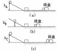 7.如图所示,在“研究物体动能与哪些因素有关”的实验中,将A、B、C三小球先后从同一装置的hA、hB、hC高处滚下(mA=mB<mC, hA=hC>hB),推动纸盒运动一段距离后静止.