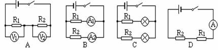 16.现有两个阻值不等的未知电阻R1和R2,为了分辨它们的阻值大小,几个同学分别设计了如图所示的四种电路(图中小灯泡规格相同),其中可行的是:( )