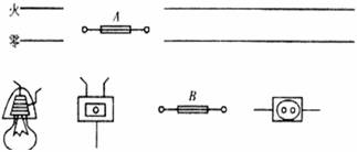 18.下图是安装一盏电灯和一个大功率插座的实物示意图,A、B为保险丝,请在图上画出接线.