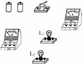 19.在图中,要求L1、L2并联,用电流表测通过灯泡L2中的电流,电压表测灯泡L1两端电压,开关控制整个电路。将符合要求的电路图画在虚线框内,并将实物连接起来。