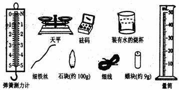 小明设计的方案:用弹簧测力计测出蜡块的重力。