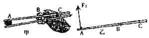 ①由图甲、乙可知F1_______F2,实验表明___________________________________.