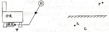 (2)一人在P点看到了像S,找出发光点S,并完成光路图乙。