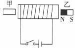 6.如下图所示,甲是铜片,乙是小磁铁,将甲和乙放到电磁铁的两边,当开关闭合后