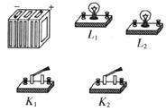 (3)(3分)在下图中将电路图实物连线,要求:L1与L2并联,K1作总开关,K2控制L1。