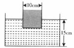 19.(6分)如下图所示,一圆柱体盛水容器的底面积为40cm2,一边长为10cm的立方体木块,在水中静止时刚好有二分之一露出水面,此时容器中水的深度为15cm。求:(取