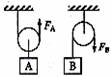 1.如图所示,物体 A 和 B 的质量相等(绳子、滑轮重力、绳与滑轮间摩擦不计),当分别用力匀速提升物体A和B时,FA︰FB= ;η1 _ __η2。(选“>”、“<”或“=”)