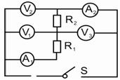 18.如图所示电路中,电压表V1,V2,V3的示数分别为U1,U2,U3,电流表A1,A2的示数分别为I1,I2,那么下列关系正确的是: