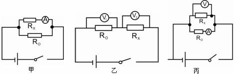 19.如图所示,在不知道电源电压的情况下,能够利用已知电阻RO测出未知电阻RX阻值的电路图是:
