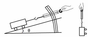 31.小军同学设计如下图所示的一个高度可调节的斜面,来探索斜面的省力情况、斜面的机械效率与斜面的倾斜程度之间的关系。他首先用弹簧测力计测出小车的重量,然后用弹簧测力计沿斜面拉动小车,调节小车倾斜角θ的大小进行了多次测量,得到下表所示的数据:
