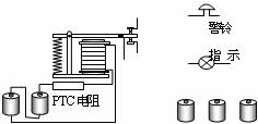 20.某同学利用PTC电阻设计了一个“过热自动报警电路”:将PTC电阻安装在需要探测温度的地方,当环境温度正常时,指示灯亮;当环境温度超过PTC电阻的居里点温度时,由于电阻变化,导致电磁铁磁性减弱,使警铃响。请帮他将图所示的电路连接完整。