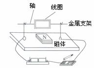 25.为了探究电动机为什么会转动,小明根据电动机主要构造制作了一台简易电动机(如图)他用回形针做成两个支架,分别与电池的两极相连用漆包线绕一个矩形线圈,以线圈引线为轴,并用小刀刮去轴的一端全部漆皮,另一端只刮去半周漆皮将线圈放在支架上,磁体放在线圈下方闭合开关,用于轻推一下线圈,线圈就会不停地转动起来