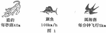 9.根据图1所示的三幅图,比较猎豹、旗鱼、褐海燕的运动快慢( )