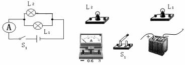 25.(2分)在下图中,根据电路图连接实物图(电流大约为0.58A左右):
